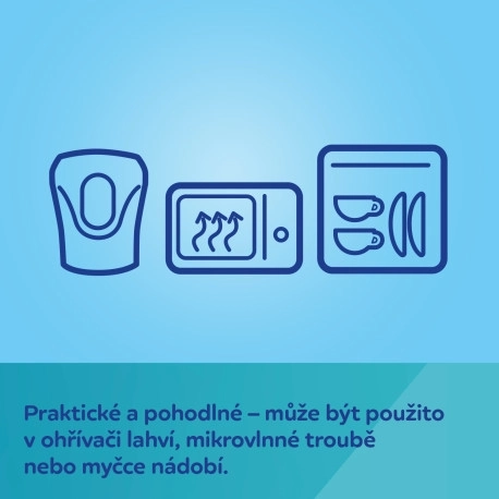 Można używać w podgrzewaczu do butelek, kuchence mikrofalowej oraz zmywarce do naczyń.