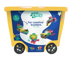 Zestaw CLICS Roller 20 w 1 łączy świetną zabawę z nauką. Dzięki unikalnemu systemowi zatrzaskiwania z łatwością zbudujesz solidne modele 2D i 3D – od pojazdów, przez zwierzęta, po fantastyczne maszyny. Duże, kolorowe elementy (ok. 5 × 5 cm) wygodnie leżą w dłoni, a obsługa jest intuicyjna także dla młodszych dzieci.