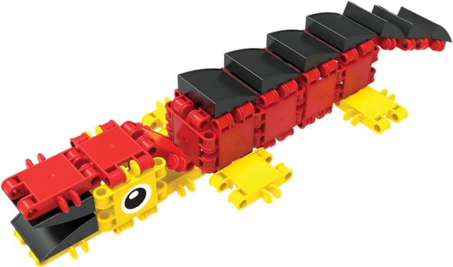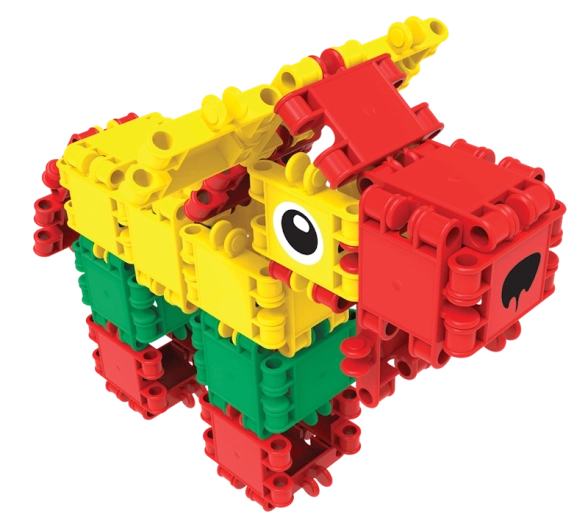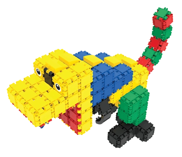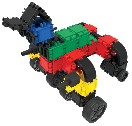 Zbuduj pojazdy, zwierzęta i fantastyczne maszyny. Szeroka gama kształtów i kolorów wspiera kreatywną zabawę i różnorodność konstrukcji.