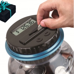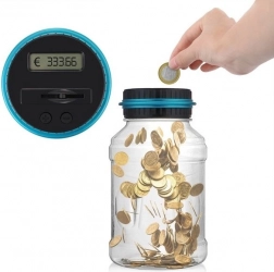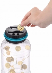 Pokrywkę łatwo odkręcić, więc dostaniesz się do monet bez uszkodzenia skarbonki. Za pomocą przycisków + i − możesz w każdej chwili skorygować kwotę. Pojemność 2,5 litra mieści około 800–1000 monet, dzięki czemu jest idealna do codziennego oszczędzania, do domu oraz jako nowoczesny dodatek lub oryginalny prezent.