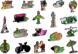 Nie przegap okazji, aby odkryć piękno unikalnie ukształtowanych elementów naszego WOODEN CITY puzzle. Każdy element jest wycięty laserowo, a niektóre w kształcie zwierząt, budynków czy przedmiotów, co zwiększa estetyczną wartość rezultatu. Puzzle są dwustronne, więc możesz je składać według zdjęcia lub wzoru na drugiej stronie.