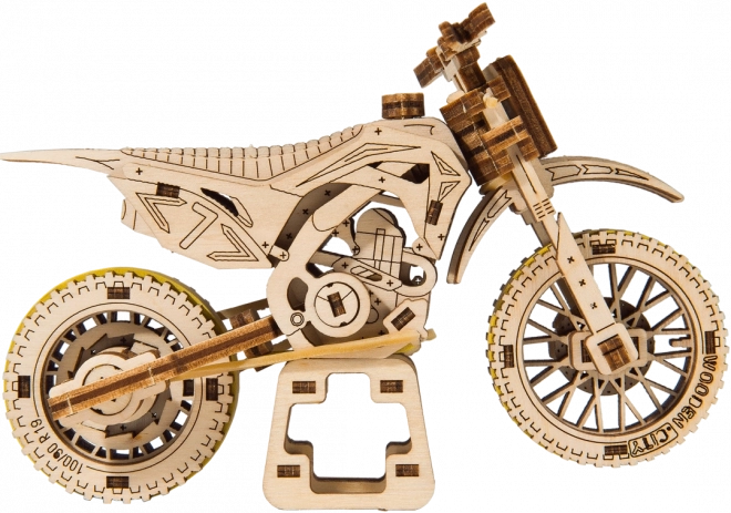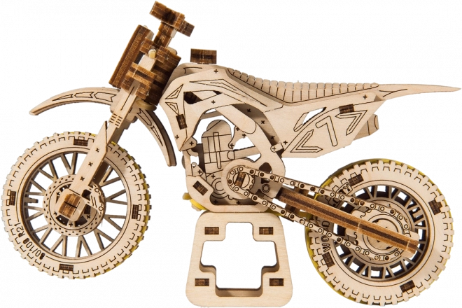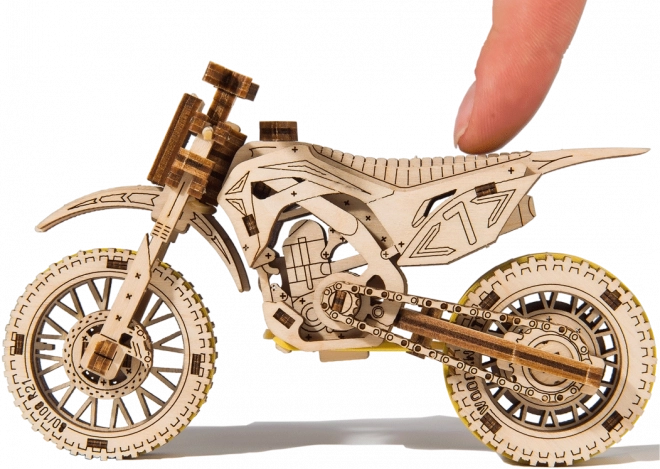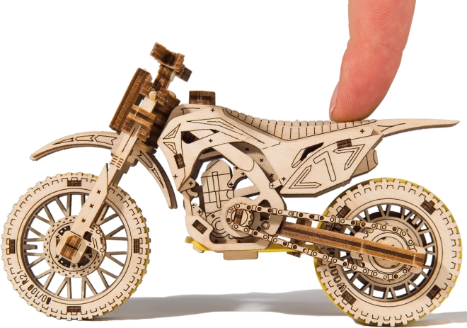 Złóż własny drewniany motocykl MotoCross od WOODEN CITY – funkcjonalny model mechaniczny, który składa się bez kleju i narzędzi. Dzięki mechanizmowi bezwładnościowemu przejedzie aż 1 metr, ma łatwo sterowane przednie koło, ogumowane koła oraz realistyczny design z wysokiej jakości brzozowej sklejki.