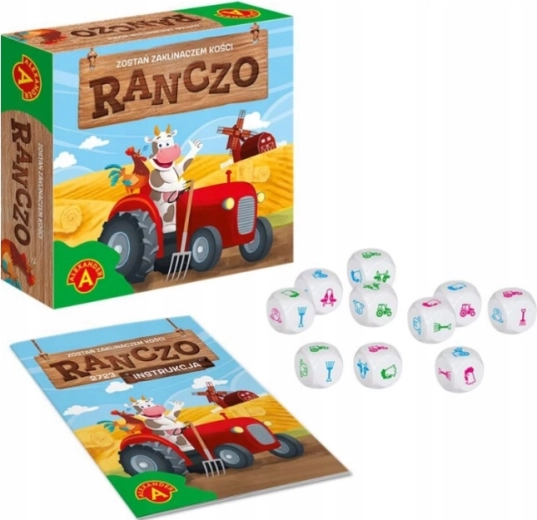 Gra gospodarska z kośćmi. Potraficie zdobywać punkty, ale nie za wszelką cenę? Rzucajcie kośćmi z obrazkami zwierząt i sprzętu rolniczego tak, aby dopasować do siebie jak najwięcej kształtów i kolorów. Tylko nie przesadzaj, bo stracisz wszystko. Prosta gra towarzyska ze zmysłem strategii i odrobiną kalkulacji. Ciekawe punktowanie i częste zmiany akcji wciągną do gry dzieci i dorosłych.