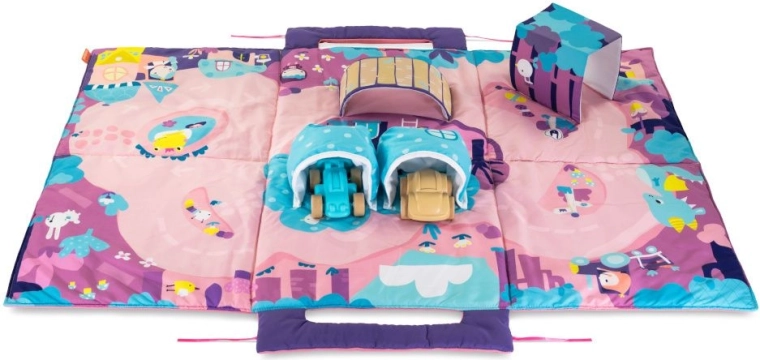 Łatwy transport – po złożeniu autka można schować do kieszonek (garaży), a dzięki uchwytom całą matę łatwo i wygodnie przenosić.