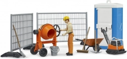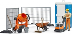 Betoniarka, płyta wibracyjna, taczka, narzędzia, barierki oraz toaleta przenośna tworzą autentyczne sceny i wspierają kreatywną zabawę.
