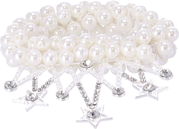 Ta ozdobna gumka to doskonały wybór dla małych i większych księżniczek. Sztuczne perły tworzą stylowy efekt, który podkreśla prosty kok i warkocz, a wygodne wykonanie trzyma włosy pewnie, bez zbędnego ciągnięcia.