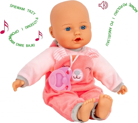 Lalka opowiada historie Czerwony Kapturek oraz Złotowłosa i trzy niedźwiedzie. Przyjemny głos pobudza wyobraźnię i wycisza przed snem.