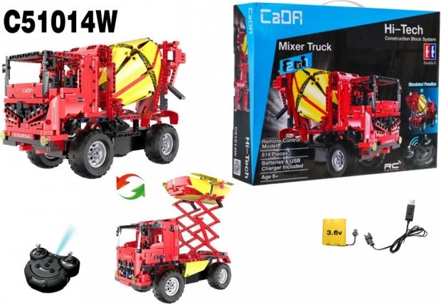 Ta techniczna seria klocków CaDA ucieszy małych i dużych konstruktorów. Dzięki solidnej konstrukcji, funkcjonalnym elementom i niezawodnemu sterowaniu RC dzieci spędzą godziny na pełnej akcji zabawie oraz rozwoju motoryki małej i wyobraźni. Zestaw oferuje 2 modele w jednym opakowaniu: szczegółową betoniarkę oraz alternatywnie ciężarówkę z funkcjonalnym podnośnikiem nożycowym.