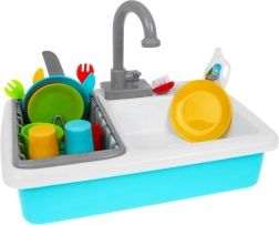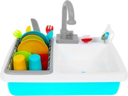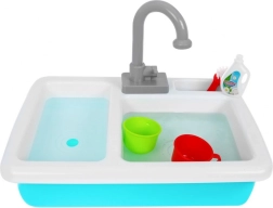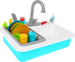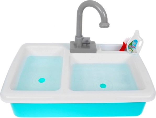 Zlew z kranem symuluje prawdziwy kuchenny zlew i wspiera zabawę naśladowczą.