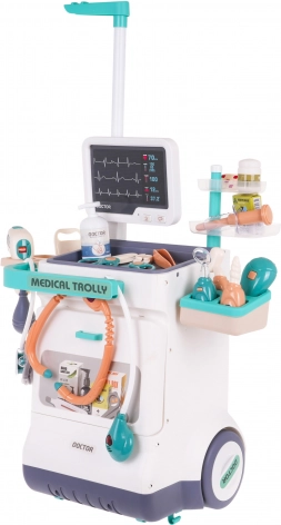 Ten interaktywny wózek lekarski to doskonały zestaw do zabawy, który pozwoli Twoim dzieciom wcielić się w rolę lekarzy. Zawiera zestaw 26 akcesoriów medycznych, w tym stetoskop, termometr oraz urządzenie EKG, zapewniające realistyczne i wciągające doznania podczas zabawy.