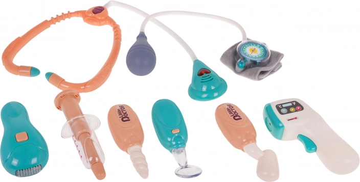 Stetoskop jest wyposażony w migającą diodę oraz dźwięki pracy serca, co zwiększa realizm zabawy.