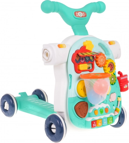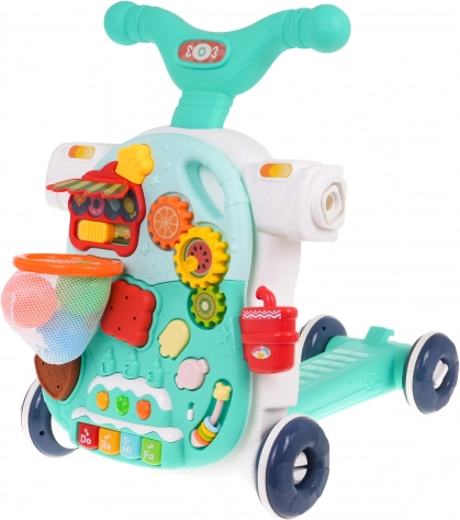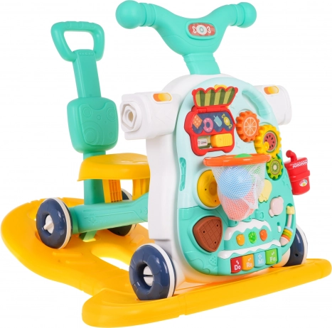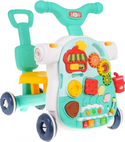 Interaktywny jeździk i stolik dla dzieci 5w1 świetnie wspiera rozwój dziecka. Został zaprojektowany tak, aby był elastyczny i wielowariantowy – można go przekształcić w:
