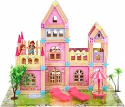 Drewniany domek dla księżniczek z klockami i akcesoriami