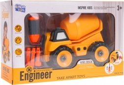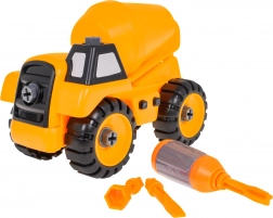 Zabawna betoniarka do montażu dla małych konstruktorów od 3 lat rozwija małą motorykę, logiczne myślenie i kreatywność. Dzięki solidnemu plastikowi pojazd można wielokrotnie rozkręcać i składać, a bęben jest podnoszony, przechylany i obrotowy. W zestawie śrubokręt z 3 wymiennymi bitami.