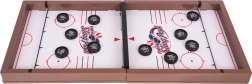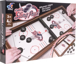 Odkryj emocje gry Sling Puck: dwóch graczy staje naprzeciw siebie i stara się jak najszybciej wystrzelić wszystkie swoje krążki przez wąski otwór w środkowej przegrodzie na stronę przeciwnika. Gra jest intuicyjna, szybka i doskonała zarówno do krótkich starć, jak i dłuższych turniejów.