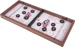 Szybka i wciągająca gra stołowa dla dwóch graczy, w której za pomocą gumek wystrzeliwujesz krążki przez otwór pośrodku na stronę przeciwnika. Idealna dla rodzin i przyjaciół – trenuje spostrzegawczość, szybkość i koordynację. Kompaktowe wymiary, solidna drewniana podstawa i proste zasady dają zabawę już od 3. roku życia.