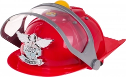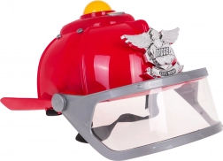 Przezroczysty, składany wizjer chroni twarz podczas zabawy i nadaje hełmowi wierny strażacki wygląd.
