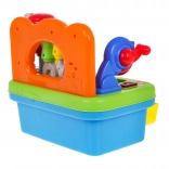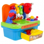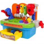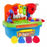 Odkryj zabawną i bezpieczną zabawkę dla małych majsterkowiczów od 24 miesięcy: kolorowy dziecięcy warsztat z sorterem, efektami świetlnymi i dźwiękowymi oraz bogatymi akcesoriami. Wspiera małą motorykę, naukę kształtów i kreatywną zabawę. Nie brakuje obrotowej piły tarczowej, ruchomego młotka, imadła, śrub, gwoździ i narzędzi idealnych do małych dziecięcych dłoni.