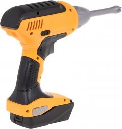 Ta dziecięca wiertarka to idealna zabawka dla dzieci od 3 roku życia. Wygląda i działa jak prawdziwe narzędzie z wymiennymi bitami do wkładania i wyjmowania śrub. Wiertarka dodatkowo oferuje realistyczne dźwięki, takie jak dźwięk wiercenia, oraz efekty świetlne, co potęguje wrażenia z zabawy. Mali majsterkowicze mogą liczyć na mnóstwo frajdy z wyjmowaną baterią, jak w prawdziwym elektronarzędziu.