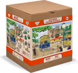 - Unikalne puzzle z laserowo ciętego drewna od WOODEN CITY zawierają specjalnie ukształtowane elementy w formie zwierząt, budynków lub przedmiotów.