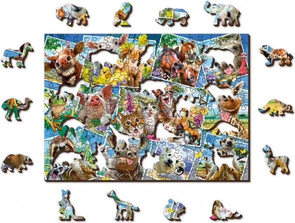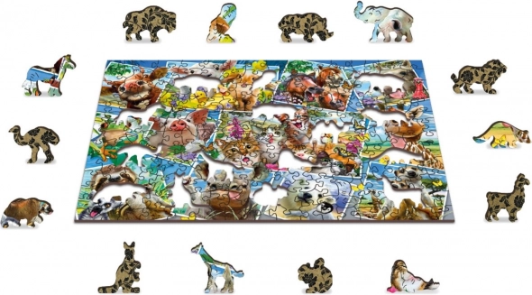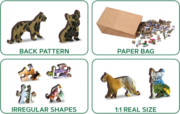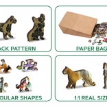 Drewniane puzzle WOODEN CITY w motywie „Zwierzęce pocztówki” zapewniają wyjątkową frajdę z układania. Dzięki dwustronnemu wykonaniu możesz wybrać układanie według obrazu na stronie frontowej lub według kształtów na stronie rewersowej z powtarzającym się wzorem. Laserowo podkreślone detale nadają elementom efektowny wygląd, a niektóre z nich – w kształcie zwierząt, budowli czy przedmiotów – mogą stać samodzielnie jako małe figurki.