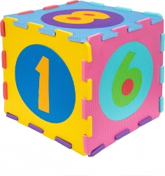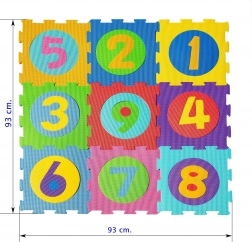 Każdy element maty zawiera cyfrę, która może pomóc dzieciom w nauce podstawowych umiejętności matematycznych.