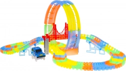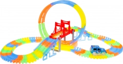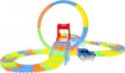 Świecący w ciemności tor ze pętlą i autkiem w zestawie jest odpowiedni dla dzieci od 3 lat. Tory są elastyczne, można je układać w dowolnych kombinacjach, obracać, podnosić, przekładać, i to podczas jazdy autka. Tory są dodatkowo fluorescencyjne, świecą w ciemności. Pojazd wchodzący w skład zestawu ma podświetlenie LED, jazda w ciemności tworzy niesamowity efekt. Pojazd jest zasilany 2 bateriami AA 1,5 V (brak w zestawie). Aby uruchomić auto, wystarczy nacisnąć przycisk na jego dachu. A więc startujemy! |