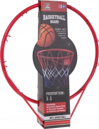W opakowaniu znajdziesz wszystko, czego potrzebujesz: metalową obręcz z zaczepami do siatki, kolorową siatkę, piłkę z antypoślizgową teksturą, ręczną pompkę z igłą oraz śruby kotwiące do bezpiecznego montażu na ścianie lub tablicy. Zestaw świetnie nadaje się do rodzinnej zabawy, treningu celności rzutów i rozwoju koordynacji u dzieci.