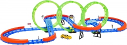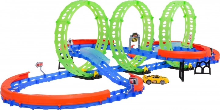 Pokonaj potrójne loopingi i obserwuj, jak samochodzik bez wahania przejeżdża przez zielone pętle z dużą prędkością.
