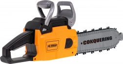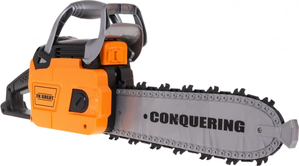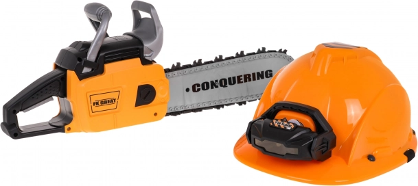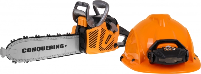 Interaktywny zestaw mechanicznej piły z efektami dźwiękowymi oraz kaskiem z latarką jest przeznaczony dla dzieci od 3 lat. Piła jest całkowicie bezpieczna dla dzieci. Została wykonana z najwyższej jakości plastiku i nie ma ostrych krawędzi. Łańcuch jest wykonany z gumy. Piłę uruchamia się pociągnięciem za sznurek rozrusznika, po czym słychać dźwięk startującego silnika. Aby uruchomić łańcuch, naciśnij i przytrzymaj dolny przycisk na uchwycie. Łańcuch zacznie się obracać i wydawać dźwięk cięcia. W zestawie znajduje się kask z regulowanym światłem i gumką pod brodą. Piła jest zasilana 3 bateriami typu AAA 1,5 V, baterie nie są dołączone. Kask jest zasilany 3 bateriami typu AG13, baterie są dołączone. .Funkcje zestawu: .- efekty dźwiękowe (rozruch silnika, dźwięki cięcia), .- efekty świetlne – światło w kasku, dioda LED z przodu piły, .- obracający się gumowy łańcuch. |