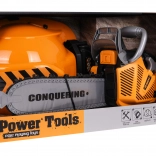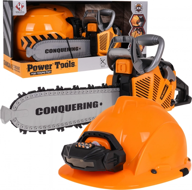 Interaktywny zestaw mechanicznej piły z efektami dźwiękowymi oraz kaskiem z latarką jest przeznaczony dla dzieci od 3 lat. Piła jest całkowicie bezpieczna dla dzieci. Została wykonana z najwyższej jakości plastiku i nie ma ostrych krawędzi. Łańcuch jest wykonany z gumy. Piłę uruchamia się, pociągając za linkę rozruchową, po czym słychać dźwięk startującego silnika. Aby uruchomić łańcuch, naciśnij i przytrzymaj dolny przycisk na rękojeści. Łańcuch zacznie się obracać i wydawać dźwięk cięcia. W zestawie znajduje się kask z regulowanym światłem i gumką pod brodą. Piła jest zasilana 3 bateriami typu AAA 1,5 V, baterie nie są dołączone. Kask jest zasilany 3 bateriami typu AG13, baterie są dołączone. Funkcje zestawu: - efekty dźwiękowe (rozruch silnika, dźwięki cięcia), - efekty świetlne – światło w kasku, dioda LED z przodu piły, - obracający się gumowy łańcuch. |