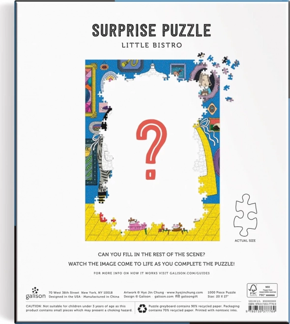 Surprise puzzle Małe bistro z 1000 elementów. Motyw odsłania się dopiero podczas układania. Wysoka jakość, wymiary po ułożeniu ok. 51 × 69 cm. Świetne wyzwanie i prezent.