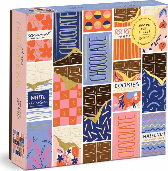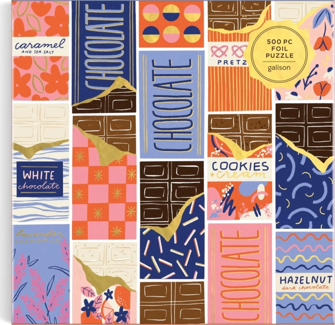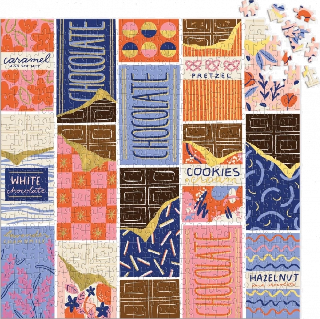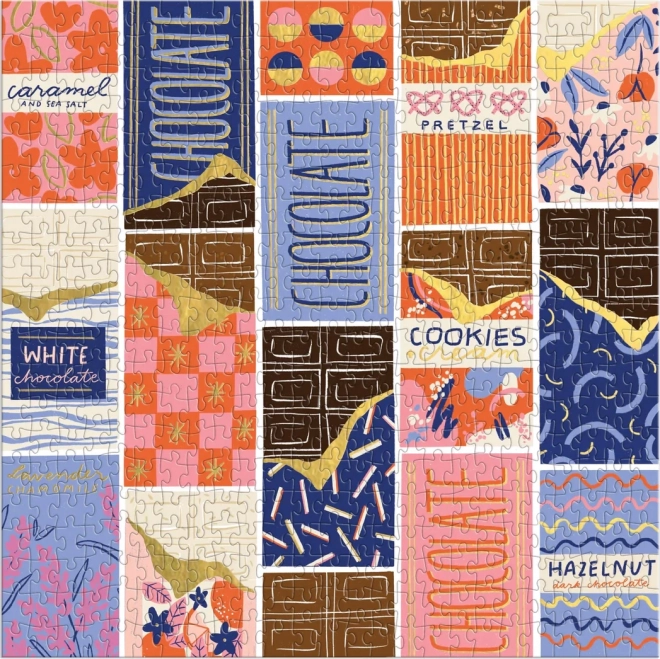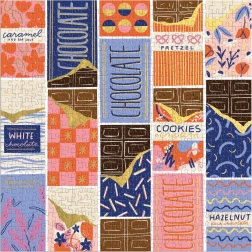Stylowe puzzle z motywem kolorowych opakowań czekolad zaprojektowała ilustratorka Megan Roy. Dzięki 500 precyzyjnie wyciętym elementom świetnie sprawdzą się na spokojny wieczór i weekendowe układanie. Kwadratowy format o wymiarach ok. 51 × 51 cm pięknie prezentuje się na stole i po oprawieniu w ramę na ścianie.