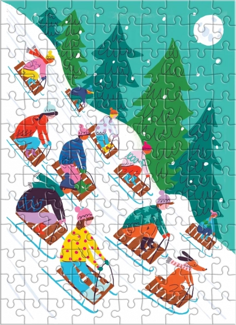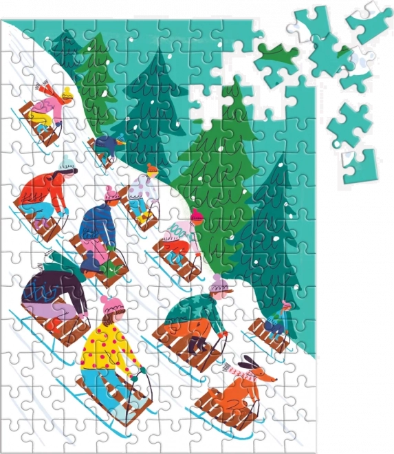 Każdy element puzzli jest starannie zaprojektowany, aby przedstawiał żywą zimową scenerię z dziećmi jeżdżącymi na sankach po ośnieżonych zboczach. Świetne dla dzieci jak i dorosłych!