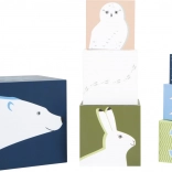 Projekt klocków obejmuje zarówno realistyczne portrety znanych zwierząt polarnych, jak i abstrakcyjne wzory, które stymulują dziecięcą wyobraźnię. Po zakończeniu zabawy klocki można łatwo włożyć jeden w drugi, oszczędzając miejsce.