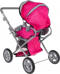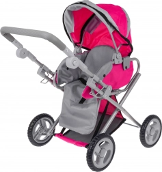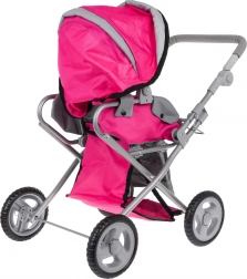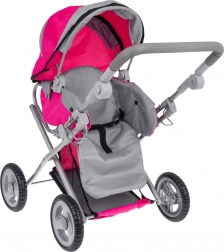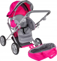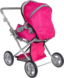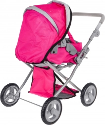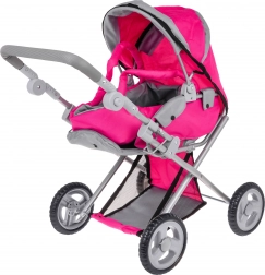 Wózek dla lalek 2 w 1 wiernie naśladuje prawdziwy model – posłuży jako głęboki z gondolą i jako wózek spacerowy. Solidna metalowa konstrukcja, tekstylne poszycia i cztery koła zapewniają stabilność i łatwe manewrowanie, dzięki czemu bez trudu poradzą sobie z nim nawet najmłodsze dzieci. Praktyczna składana budka chroni lalkę, a pasy bezpieczeństwa utrzymują ją na miejscu.