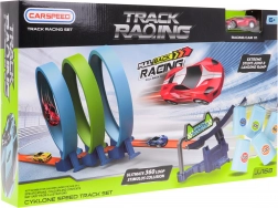 Zabawny tor wyścigowy z potrójną pętlą, autkiem z napędem pull-back i przeszkodami w postaci beczek dla dzieci od 6 lat. Wystarczy naciągnąć autko do tyłu, puścić i patrzeć, jak pokonuje 3 pętle, przebija rampę i strąca przeszkody – to wszystko bez baterii.