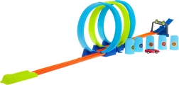 Ten kolorowy tor wyścigowy zapewnia adrenalionowe przejazdy z potrójną pętlą, skokiem z rampy i strącaniem przeszkód. Autko z napędem pull-back łatwo się naciąga i po zwolnieniu pokonuje pętle, a następnie mknie do mety. Idealny dla dzieci od 6 lat, które kochają prędkość, kaskaderskie triki i rywalizację.