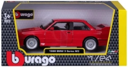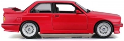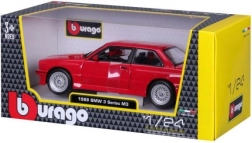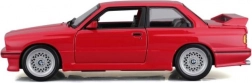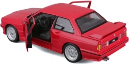 BMW 3 Series M3 z 1988 roku w eleganckim czerwonym kolorze. Ten wiarygodny model w skali