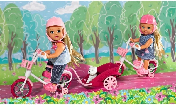 Lalka Evi Love dostarcza dzieciom wspaniałych historii pełnych przygód. Dzięki trójkołowemu rowerkowi i odczepianej przyczepce Evi może bezpiecznie wozić swojego białego pieska na wycieczki. Ruchome kolana ułatwiają siedzenie na rowerku, a dzieci mogą cieszyć się realistyczną zabawą z naciskiem na ruch i opiekę nad zwierzątkiem.