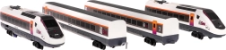 Duży zestaw pociągów z torami jest doskonałym narzędziem do rozwijania wyobraźni i motoryki dzieci. Zestaw zawiera: