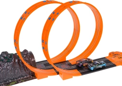 Zawiera pętle i ostre zakręty z osłonami dla większego bezpieczeństwa podczas wyścigów.