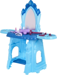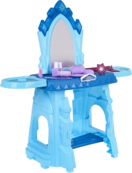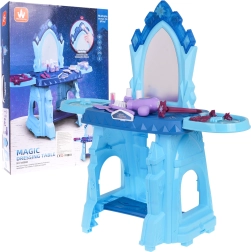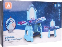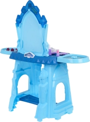 Ta magiczna toaletka z motywem lodowego zamku oferuje dzieciom niekończące się możliwości kreatywnej zabawy. Wyposażona jest w duże lustro z przyciskiem w kształcie gwiazdy, który po naciśnięciu aktywuje efekty świetlne i dźwiękowe.