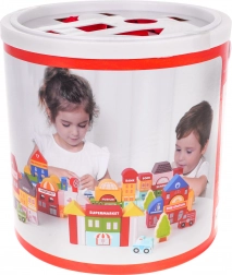 Przedstawiamy kolorowe drewniane klocki do budowy własnego małego miasta, odpowiednie dla dzieci od trzeciego roku życia. Ten zestaw jest nie tylko zabawny, ale także bezpieczny i edukacyjny. Dzięki niemu dzieci nauczą się rozpoznawać kształty i figury geometryczne oraz pobudza ich wyobraźnię i myślenie logiczne.