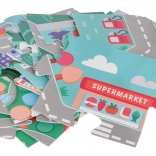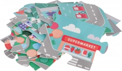 Unikalna podstawka z motywami miasta poprawia umiejętności motoryczne i pobudza miejską wyobraźnię.