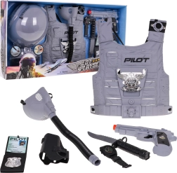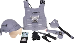 Zestaw małego pilota dla dzieci od 3 lat oferuje zabawę i naukę. Zawiera hełm, kamizelkę, maskę, zabawkowy pistolet oraz inne realistyczne akcesoria do zabawy w role.