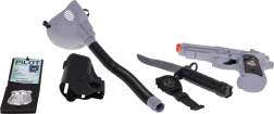 Zestaw zawiera maskę z rurką do oddychania, zabawkowy pistolet, nóż oraz inne realistyczne akcesoria do przygód.