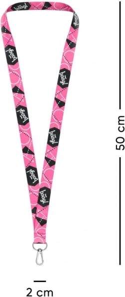 Na czarnych częściach paska wyróżnia się wyrazisty nadruk z logo BAAGL i motywami serduszek, nadając mu unikalny wygląd. Smycz jest idealna do kluczy, kart ID, pendrive’ów lub mniejszych akcesoriów, a dzięki długości 45 cm wygodnie nosi się ją na szyi lub przypina do torby.