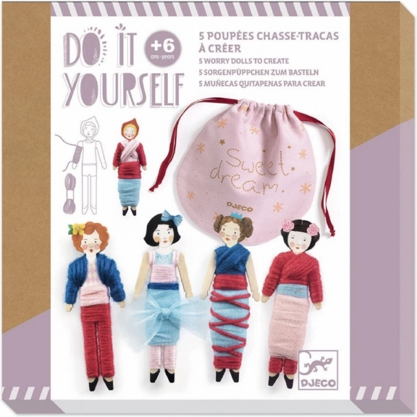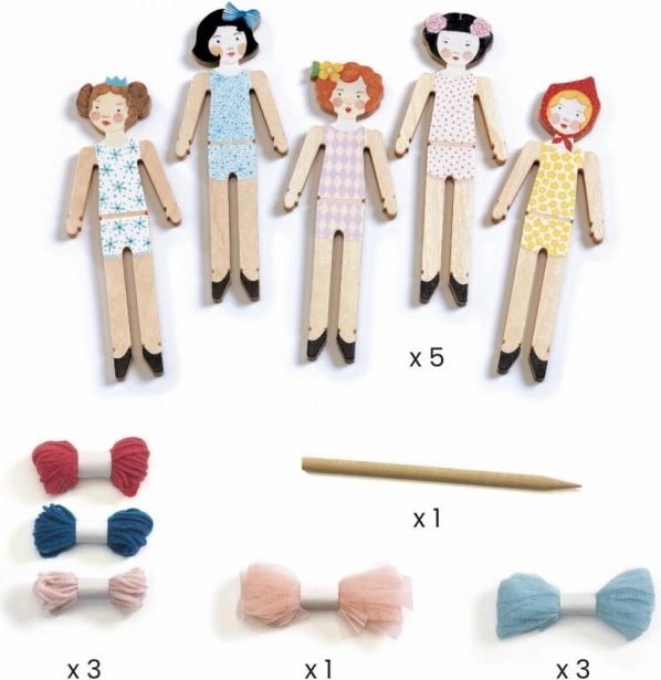 Niesamowity zestaw dla dziewczynek, które lubią lalki. Zestaw, dzięki któremu dziewczynki wykonają 5 pięknych laleczek i mogą nosić je w płóciennym woreczku wszędzie ze sobą. Rozmiar lalki: ok. 10 × 3,5 cm. Odpowiednie dla dzieci od 6 lat.