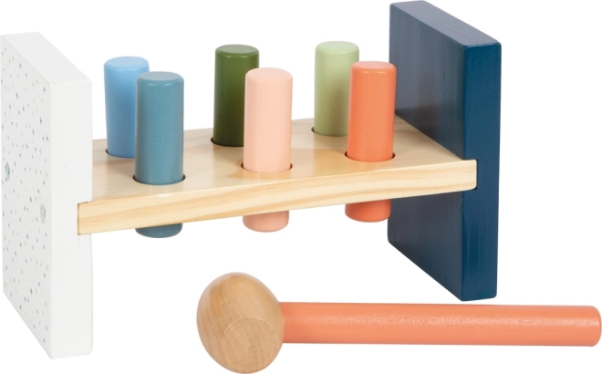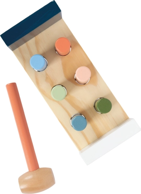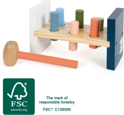 Zabawa rozwija cierpliwość, koncentrację i wzmacnia pewność przy uderzeniach. Dzięki solidnemu wykonaniu i gładkim krawędziom jest bezpieczna dla małych rączek, a naturalny wygląd i pastelowe kolory świetnie pasują do każdego pokoju dziecięcego.
